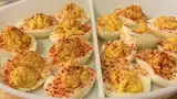- Step 2:Cut eggs in half, lengthwise. Remove the egg yolks and mash them together in a small mixing bowl. Mix in the paprika, mayonnaise, and dry mustard. Spoon mixture into the egg whites; cool and serve.